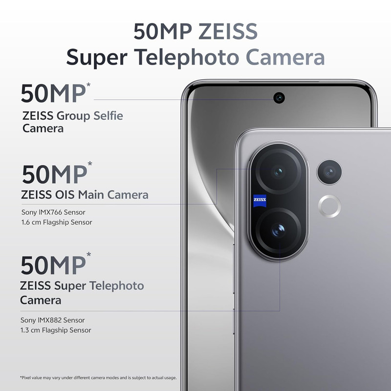 [CAMERA]: Zeiss OIS 50 MP Rear Camera The 50 MP Zeiss Super Telephoto Camera: AF, f/2.65, FoV 33.1°, 4P lens, and the main camera: OIS, f/1.88, and FOV 84° 8 MP, 10X Telephoto Stage Portrait ZEISS Ultra Wide-Angle camera: 50 MP front camera, f2.0, FoV 120° ± 3, 5P lens [SCREEN & DISPLAY]: 17.20 cm (6.77″ inch) ZEISS Group Selfie Camera: AF, f/2.2, FoV 92° ± 3°, 5P lens | 4K/1080P/720P Video Recording Resolution [MEMORY & SIM]: 12GB RAM | 512GB Internal Memory | LPDDR4X | UFS 2.2 | Bluetooth 5.4 | USB 2.0 | 5G + 5G Dual SIM Dual Standby Slim Quad Curved AMOLED capacitive multi-touch Display | P3 wide colour gamut supported | 387 ppi high pixel density | 1600 nits peak local brightness | SGS certified for Low Blue Light